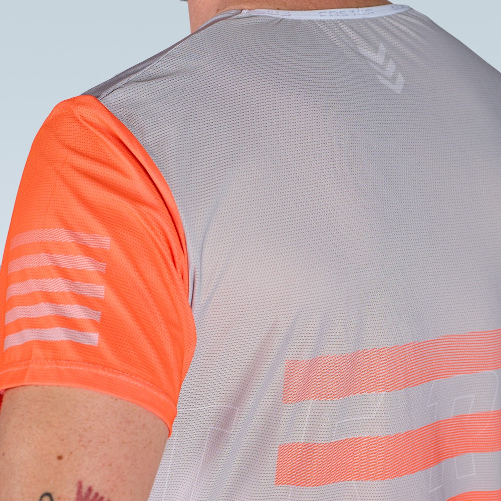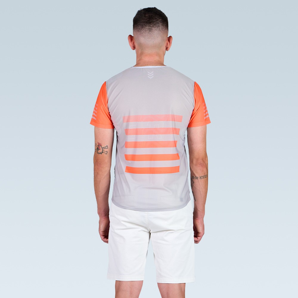 El diseño de la camiseta Speed Pro Tangerine está inspirado en la simetría y el aroma de los cultivos de naranjo por los que el entrenamiento se hace más ameno gracias al aroma de las mandarinas y naranjas.